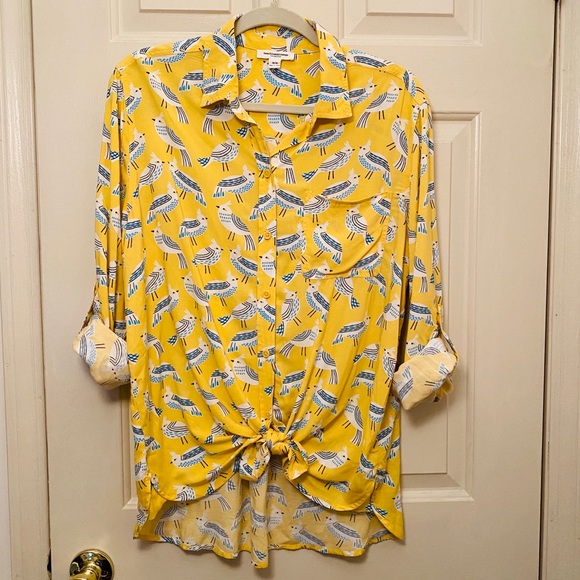Beachlunchlounge Tops Beachlunchlounge Yellow Bird Button Down Shirt Poshmark
